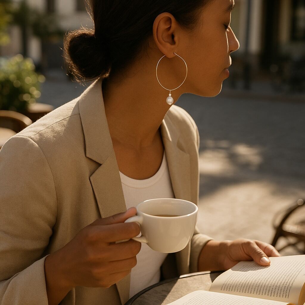 バロックパール特有の不規則な美しさが、シンプルなコーディネートに華やかさを添え、