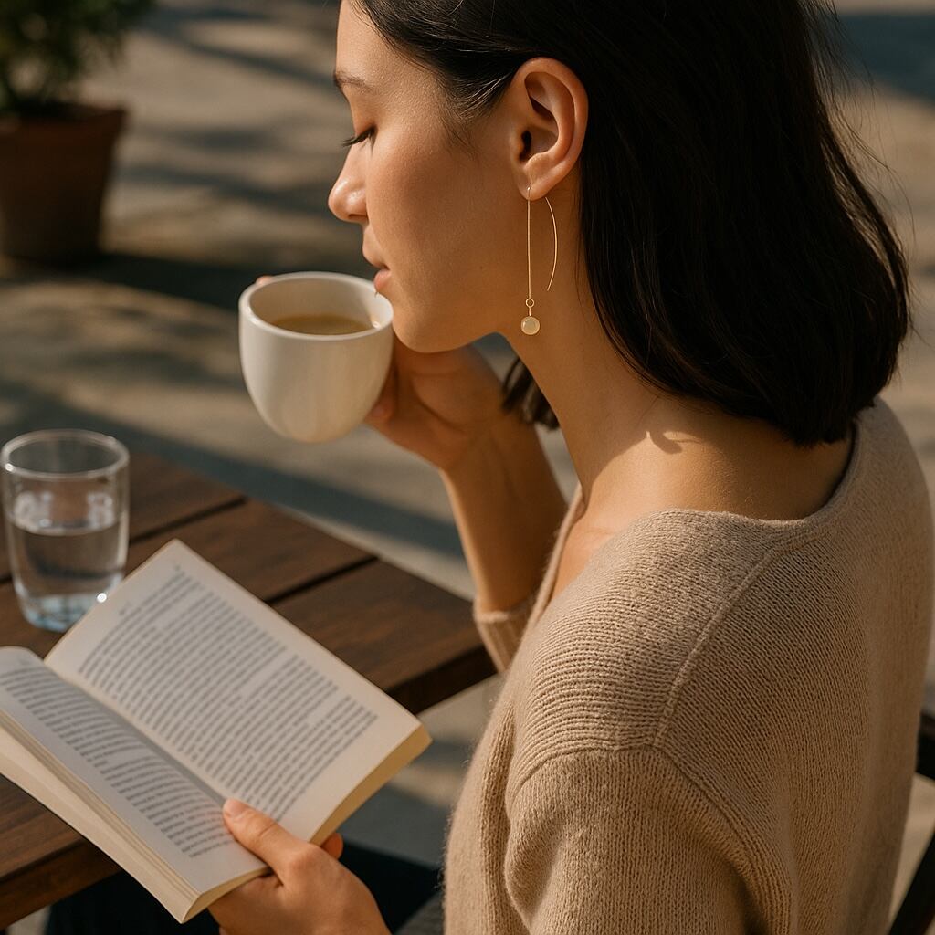輝くシトリンを使用したチェーンピアスで、明るいエネルギーを放つ