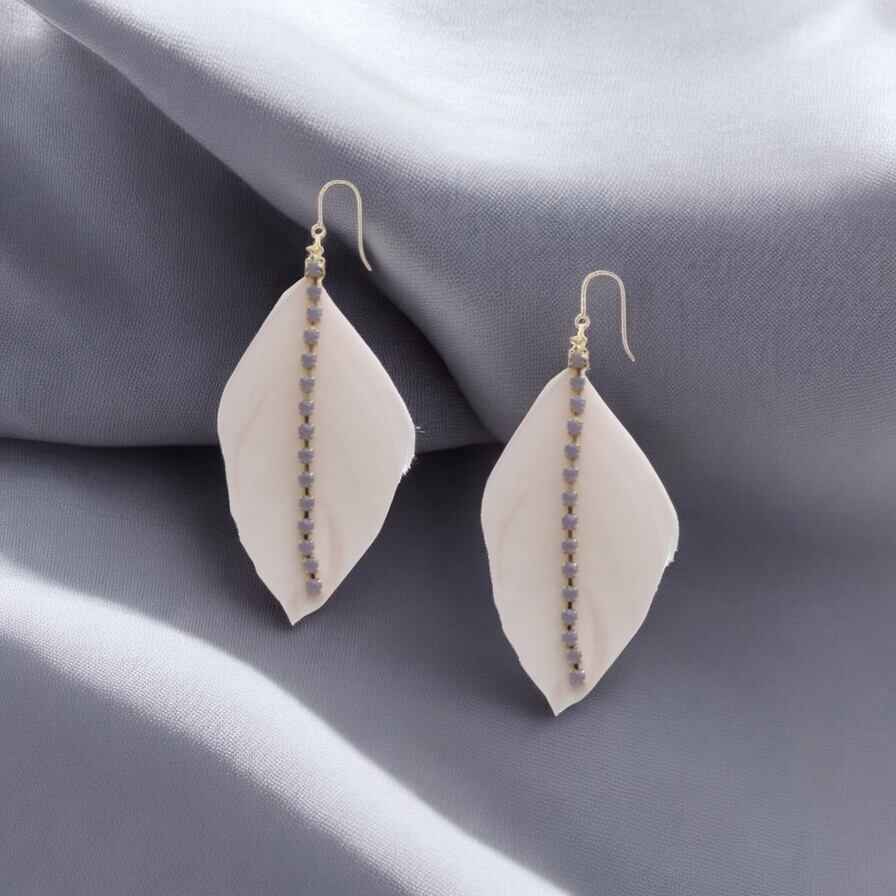 日常使いからお出かけまで、様々なスタイルにマッチします。 このピアスには、羽根が持つ自由や軽やかさに加え、グレーラインストーンがもたらす神秘的な魅力も込められています。あなたの個性を引き立てる素敵なアイテムとして、